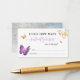Looking for great baby or bridal shower game ideas for a butterfly themed party? Here is a "guess how many butterfly kisses" in the jar game that is sure to be a hit! The fun purple butterfly enclosure card features watercolor art by Raphaela Wilson. The elegant monarch butterflies are designed with a subtle floral pattern on their whimsical wings, have a cool 3D effect with a soft drop shadow, and can be resized or rearranged on the card. The back of the card depicts glitter sparkle butterfly confetti, along with a rustic stone grey watercolor rock texture and white sparkles. With this creative design flexibility, you can reword the text to become details enclosure cards for butterfly weddings, a sweet 16 birthday party, quinceanera / quince, among other special events. Even turn them into small well wishes cards for your guest to leave you a personal note. Chose between gold or silver options, and feel free to alter the calligraphy script and modern font selections to a unique typography and colour you like. Category: baby shower enclosure cards with butterflies; simple wedding enclosure cards; and cute purple butterfly bridal shower games. Gold and purple party theme colours: purple, lilac pastel, lavender, light blue violet, soft grey, dark grey, black and white (with options of champagne yellow gold or silver).