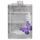 Enjoy your favourite alcoholic beverages anytime with a Purple Butterfly Rustic Vinyl Wrapped Flask. Flask design features a vibrant butterfly resting on delicate foliage with a space to add your name against a rustic wooden background. Additional gift items available with this design as well.
