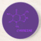 Caffeine - dark purple sandstone coaster with bright purple lettering and molecular model.