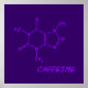 Caffeine - dark purple poster with bright purple lettering and molecular model.