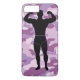 A stylish purple camouflage design with bodybuilder silhouette Iphone case! This is sure to please, with a stylish design that is pleasing to look at and eye catching! Perfect for anybody.