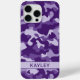 Customise this purple camouflage iPhone 15 pro max case with your your name in a trendy modern CAP font in dark purple on light purple. It's so modern, girly and trendy! Perfect for any country girl!