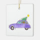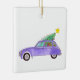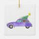 Purple Car with Christmas Gifts Ceramic Ornament