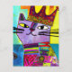 Purple Cat in a Crown Mixed Media Collage Postcard