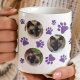 Showcase your favourite feline friend with this personalised Purple cat paw 8-photo collage mug. This charming mug features a Purple cat paw print design and space for eight cherished photos. Perfect for cat lovers, this mug makes a thoughtful gift for birthdays, holidays, or just because. Sip your morning coffee or tea while reminiscing about all the purrfect moments with your furry companion.