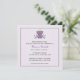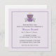 A beautiful invitation for girls' First Holy Communion with purple chalice with cross and purple flowers on light lavender background with thin frame.