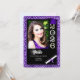 If you daughter loves both purple and animal print, then she'll be thrilled when you add her photo to this graduation party invitation which features a big of digital bling.