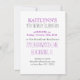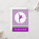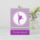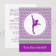 Personalised gymnast party invitations with purple and grey chevron stripes and custom text.