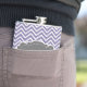 Enjoy your favourite spirits when you're away from home with a personalised Purple Chevron Flask. Flask design features a purple chevron background and an ornate grey tag to personalise with your name and monogram. Additional items available with this design as well. Please contact me directly for assistance with personalisation.