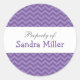 Purple chevron personalised sticker, perfect for labelling books and school supplies!