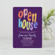 A colourful and fun Christmas open house party invitation. This fabulous invitation features bold modern typography on a purple background. Easy to personalise with your own festive open house or business open house celebration details.