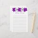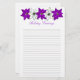 Purple Christmas holiday stationery with lines. Blank, lined paper to write a personal note. Dark purple and white artistic floral border at the top with custom greeting in purple script.
