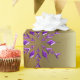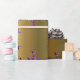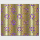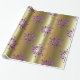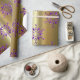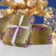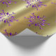 An elegant golden Christmas wrapping paper with a pattern of purple snowflakes (or stars) scattered over a gold background to add a festive and sophisticated touch to your Christmas gift wrapping this year.