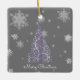Purple Christmas Tree and Snowflakes Ceramic Ornament