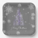 Purple Christmas Tree and Snowflakes Paper Plate