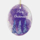 Purple Christmas Tree Golden Snowflakes Ceramic Ornament