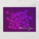 A cute and whimsical abstract background in varying shades of purple with round circles clumped together with gradient tones ranging from purples to pink. Thank you written in white using an elegant handwritten font.