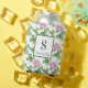 This drink cooler has a simple all-over pattern of purple clover on a bright white background. Front and centre is a place for you to add your initial and a name.