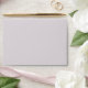 RSVP envelope in palest muted violet with a lining of confetti in pink, violet, and blue.