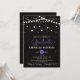 Celebrate the Graduate with this faux dark wood background with purple small sparkly confetti invitation. It has purple confetti tiny all over the background in shades of purple coming down the top of the invitation. Across the top are strings of lights . Personalise with your party information.