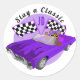 Purple Convertible Classic Car, Chequered Flags Round Sticker
