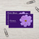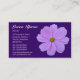 A business card with a purple Cosmos photo motif. Business name etc on the front with other details on the reverse with the same motif and style.