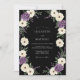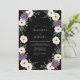 This design features a dramatic dark background adorned with a vibrant cascade of painterly blossoms. Deep lavender and creamy white blooms intertwine with delicate greenery, creating a rich and artistic floral arrangement. The mood is elegant and sophisticated, perfect for a romantic affair.
