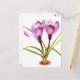 Beautiful floral purple crocus postcard. Artwork is reproduced from original watercolour by Sarah Trett. Painted from my garden in Essex, England.
