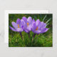 This postcard features a photo of a purple crocus.