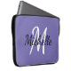 Laptop case with a purple background and white custom monogram first initial and first name.