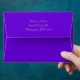 Elegant wedding invitation envelope, done in purple colour, and a pale yellowish gold, on the inside of the envelope. Golden yellow text return address, on the back flap, is fully customisable and ready to personalise with your information. Lovely finishing touch to our Purple Satin and Peacock Wedding Invitations.