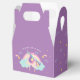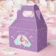 Personalised magical rainbow unicorn gable favor box in purple background. Girly, cute and fun.
