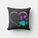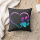 Purple Cyan Dog paw Print Heart Cushion