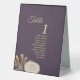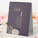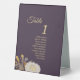 This Purple Daisy Antique wedding table tent sign with guests combines a modern boho, vintage style design with a traditional, royal type of design. The dark plum and dusty lavender, contrasting the minimal floral, gold wildflowers along with the yellow calligraphy, create a simple but classy touch to your spring or summer marriage celebration.