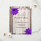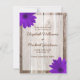 A country themed wedding save the date announcement. Featuring purple daisies on barn wood. Easily customise with your information.