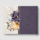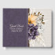 Stylish wedding guest book done in an ivory textured look, on half the book and a muted purple on purple floral flourish damask, on the middle section of the book. Lovely bohemian style graphics of purple and yellow flowers with pampas grass, decorates the ivory section, of the book. Personalise the custom text fields, for your wedding day.