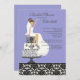 Purple Damask Brunette Bride Bridal Shower Invitation