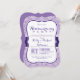 Elegant, formal violet purple & white damask pattern housewarming, house warming party invitation. Perfect year round classy invite for spring, summer, fall, or winter new house, housewarming parties. Bracket shape invite for stylish vintage look.