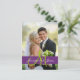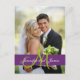 Purple Damask Wedding Photo Thank You Postcard. Replace the sample photo with your own wedding photograph, add you monogram and names and your wedding thank you text.