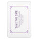 Simple and minimalist Deco Chic Save the Date Flexi Magnet with a modern purple art deco ornamental border. This classic and elegant save the date magnet is easy to customise with your wedding details. Find more personalisation options by clicking Customise.