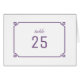 Simple and minimalist Deco Chic Table Number Card with a modern purple art deco ornamental border. This classic and elegant table card is easy to customise with your wedding details. Find more personalisation options by clicking Customise.