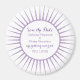 Sophisticated and elegant Deco Retro Save the Date Magnet in purple featuring a circular art deco ornamental sunburst design. Easy to customise, simply add your wedding details in the text fields provided. Click "Customise It" to find more personalisation options.