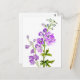 Everyday fine art botanical postcard featuring two lilac light purple hued delphinium flowers spikes. Print coloured from a original painting in watercolour by artist Sarah Trett.