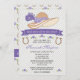 AND SHE'S OFF TO THE ALTAR! THE BRIDE WILL LOVE THE HEAD START TO HER WEDDING WITH THESE PRETTY KENTUCKY DERBY INSPIRED BRIDAL SHOWER INVITATIONS WITH A STRIPED, STRAW DERBY HAT WITH LIGHT PURPLE ROSES, A POLKA DOT PURPLE SASH AND MATCHING DARKER PURPLE FEATHER WITH A WATERCOLOR LOOK DESIGN. LUCKY HORSE SHOES, A PURPLE BANNER AND PRETTY ROSE GARLAND ELEMENTS ARE PERFECT FOR A RACE FOR THE ROSES THEMED WEDDING SHOWER FOR HER. A DIAGONAL GRAY AND WHITE STRIPED BACKGROUND. THE BACK HAS A HORSESHOE AND ROSE TRELLIS BACKGROUND ON TOP OF A POLKA HEART PATTERNED BACKGROUND. ADD THE EVENT NAME ON THE PRINTED RIBBON LOOK DESIGN ON THE BACK. ARTWORK © CHRISSY H. STUDIOS, LLC. ALL RIGHTS RESERVED.