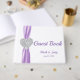 Elegant diamond heart with a purple ribbon decorate this guestbook. Wedding guest books are fun for both the couple and their celebrants. Invite attendees to leave you well-wishes at your reception, and you're guaranteed to have a keepsake to look back on for years to come. Plus, your guests will get to leave their mark on your event, not to mention put in writing whatever they didn't have a chance to express in person on the big day. Personalise the book by changing the text in the fields provided. You can change font style, size, and colour.