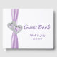 Elegant diamond hearts with a purple ribbon decorate this guestbook. Wedding guest books are fun for both the couple and their celebrants. Invite attendees to leave you well-wishes at your reception, and you're guaranteed to have a keepsake to look back on for years to come. Plus, your guests will get to leave their mark on your event, not to mention put in writing whatever they didn't have a chance to express in person on the big day. Personalise the book by changing the text in the fields provided. You can change font style, size, and colour.