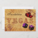 rustic vintage Vegas design with purple coloured dice and shabby chic red hearts, vegas wedding invites. Matching products also available.