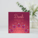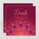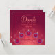 Purple diyas on a rangoli with a peach to burgundy background for Diwali. Elegant invitation.