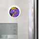 Magnet with illustration of cute purple and yellow dragon girl / fairy-tale design for kids in black circle , design for kids by Maxi Harmony,