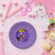 Design with illustration of cute purple and yellow dragon girl / fairy-tale design for kids on purple background